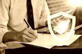 Man signature document for life insurance investment., Insurance concept, Insurance for healthcare
