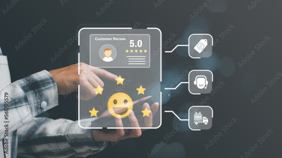 customer service and satisfaction concept,service satisfaction,very impressive rating,Evaluation and Audit,Consumer and 5 star icon,Represents the highest quality in terms of products and services.