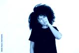 Portrait of stressed young woman touching aching neck over white background. Biracial lady with afro hairstyle wearing black T-shirt suffering from neck cramp. Muscle pain concept