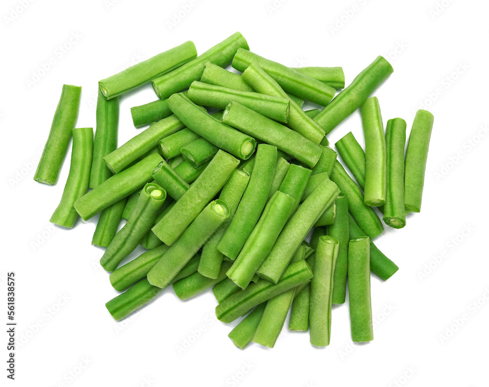 Bunch of fresh green beans cut isolated on transparent background with PNG.