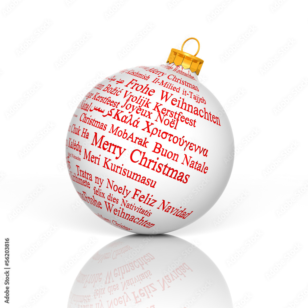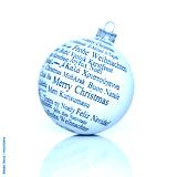 Merry Christmas in different languages forming a Christmas Ball