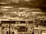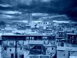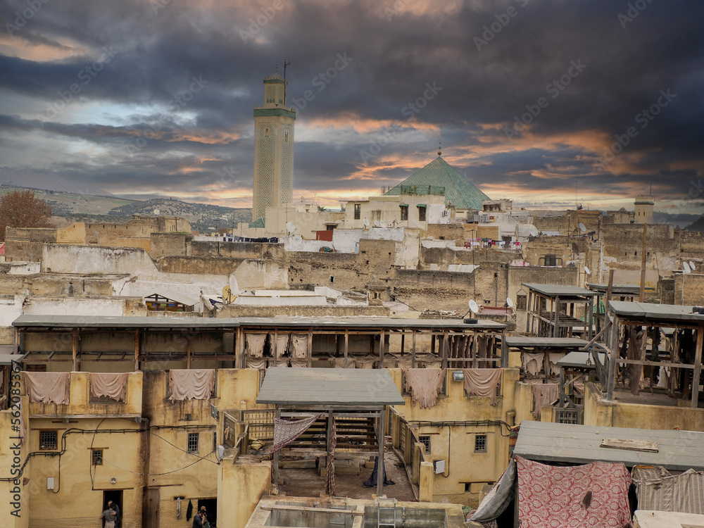 Fes, Morocco, Tannery aerial view Africa Old tanks of the Fez's tanneries with color paint for leather
