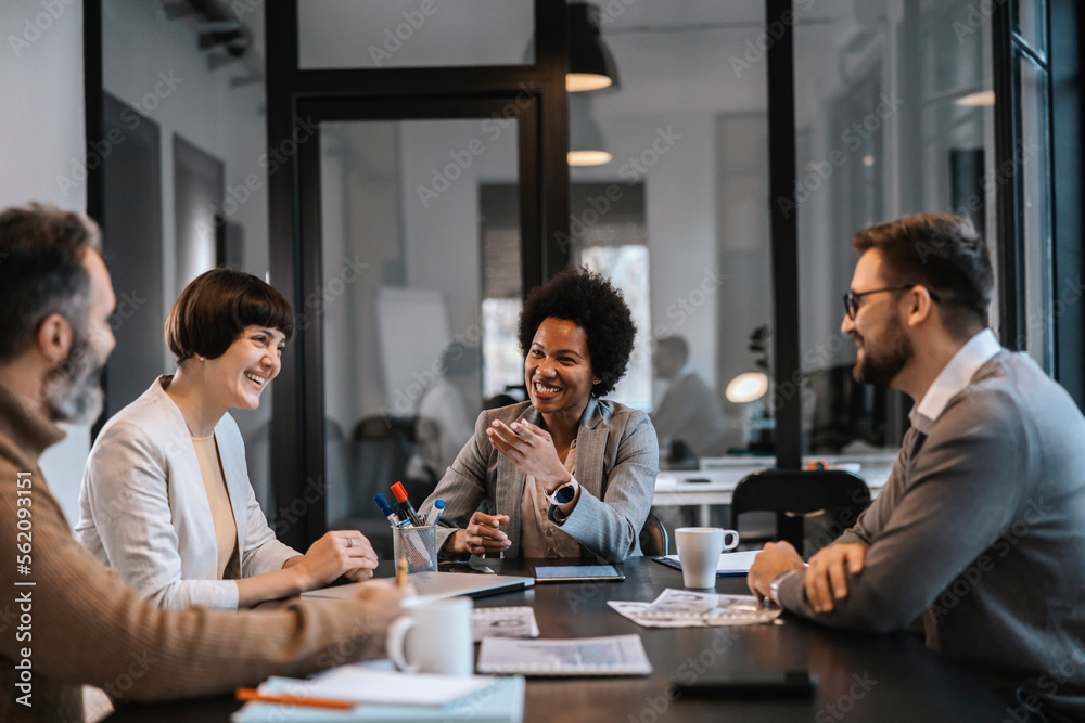 Happy businesspeople having meeting and brainstorming at the boardroom at start up firm.