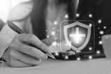 Woman signature document for life insurance investment., Insurance concept, Insurance for healthcare