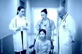 Team doctor nurse happy in hospital background, health insurance life insurance concept