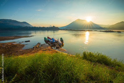 Beautiful view of the Mekong river in the morning,Kaeng Khut couple scenery, Chiang Khan, Thailand