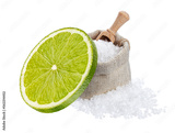 Lime slice with salt, margarita cocktail ingredient isolated on white background
