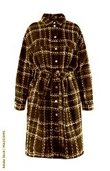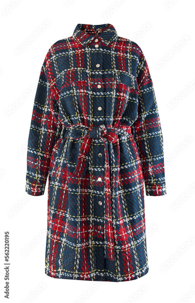 Fashion women's coat isolated on white. Multicolored checkered outwear. Female clothes. Lady's clothing.