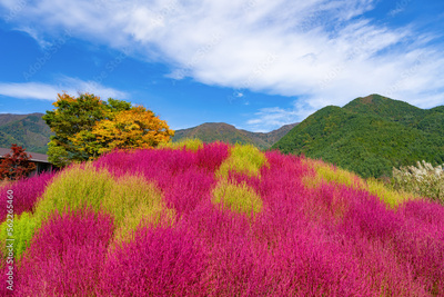 山梨県富士河口湖町大石公園 コキアの紅葉