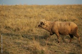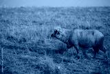Beautiful, domestic sheep in a large field, lambs graze near the river, a beautiful view.