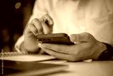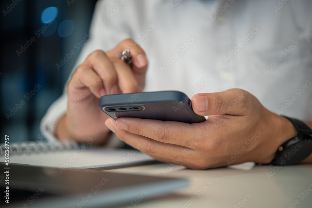 man using mobile smart phone and working on laptop computer.education and technology concept, student working, Freelance.