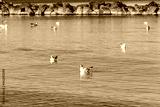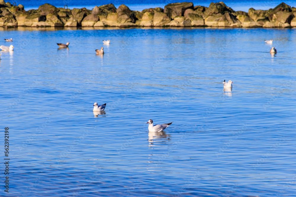 Flock of seagulls swimming in the Baltic sea