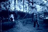 Farmer farm barn adding food for animals healthy dairy cows feeding on fodder standing in row of stables this is farming business concept.