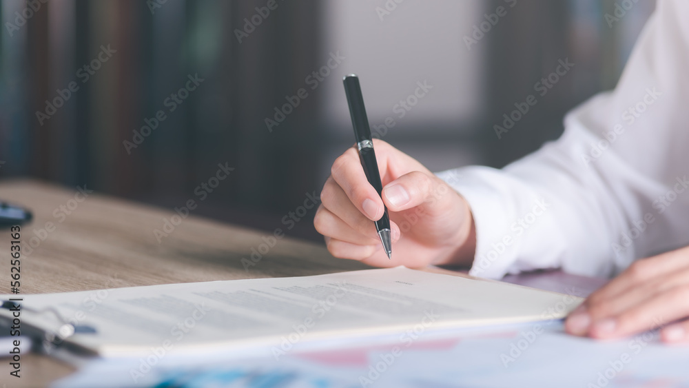 Businessman validates and manages business documents and agreements. , signing a business contract approval of contract documents confirmation or warranty certificate,employment idea, project review