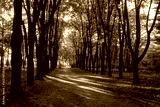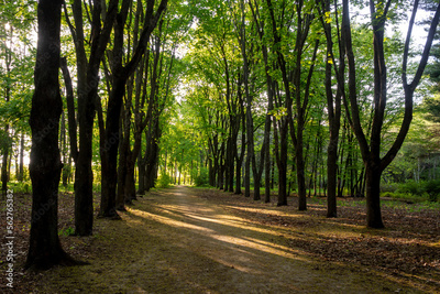 Beech alley in rays of setting sun. Concept of peace, relaxation