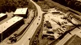 Ready-mixed concrete batching plant near strips mall highway in Flowery Branch, Georgia, USA