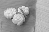 Thai desserts (Khanom Chan) decorated with pandan leaves placed on banana leaves.