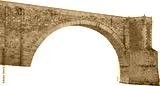Isolated PNG cutout of a medieval bridge leading to a huge gate on a transparent background, ideal for photobashing, matte-painting, concept art