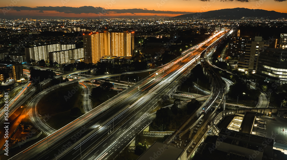 Highway interchange in Osaka city Japan at sunset