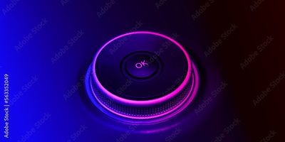 Round joystick with OK button in the middle. Dark blue background, neon lighting.