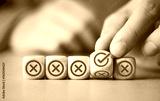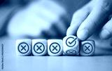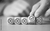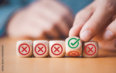 Hand flipping green correct sign symbol among red incorrect or cross sign for document check approve business project concept, Quality assurance and ISO guarantee concept.