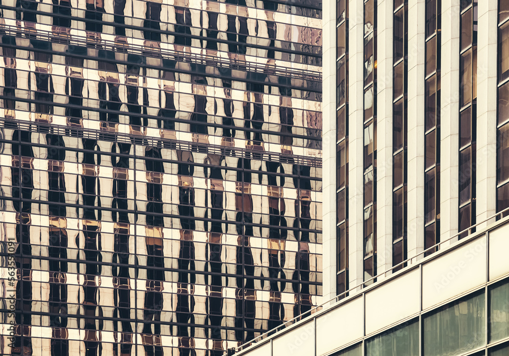 Manhattan diverse facades, urban background, color toning applied, New York City, USA.