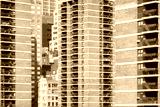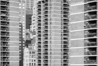 Black and white photo of Manhattan diverse architecture, New York City, USA.