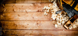 Hand planer with wooden sawdust.