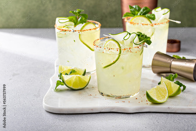 Cucumber margarita with lime and spicy rim