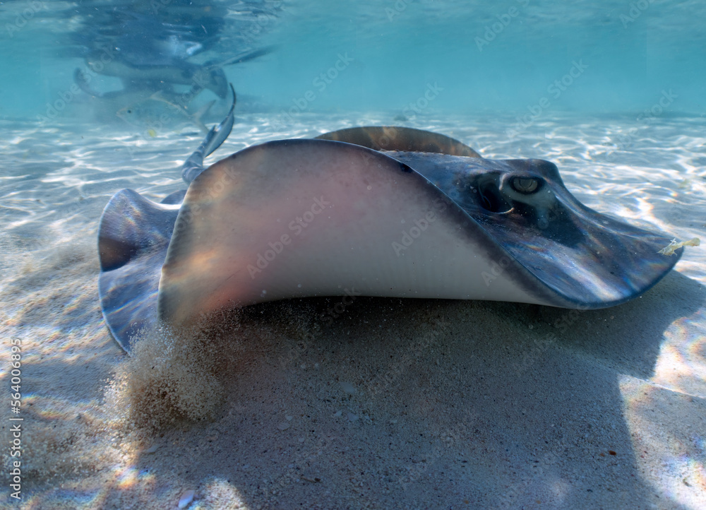 Southern Stingrays (Hypanus americanus) in shallow water in South Bimini, Bahamas