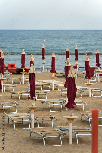 Sun loungers and umbrellas on the beach.