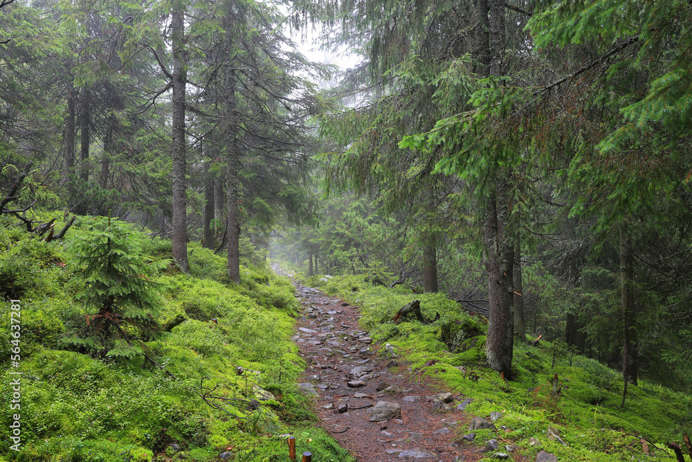 pathway in wet green forest
