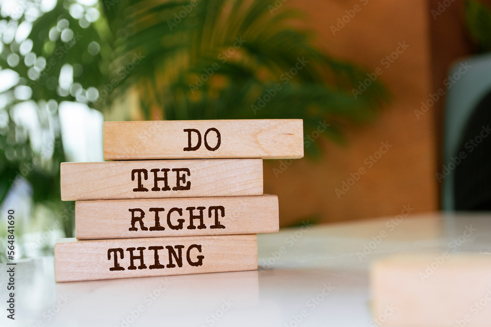 Wooden blocks with words 'Do The Right Thing'.