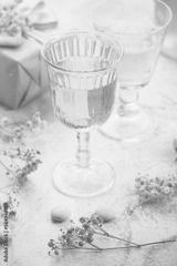 Rose sparkling wine, french macarons and box of chocolates for Valentime, mothers day or birthday
