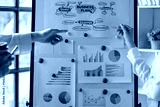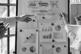 Investment finance concept, group of young businessmen pointing to graph Business advisory meetings and strategic brainstorming sessions, analysis with financial and market data. new business project
