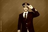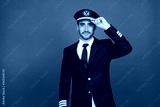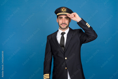 Airline pilot wearing uniform greeting with his hat