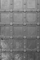 Decorative metal background. Old cracked iron with traces of rust. Metallic lacework.