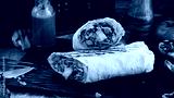 Fresh grilled shawarma with ham, pork, cabbage, sauce and pita bread.