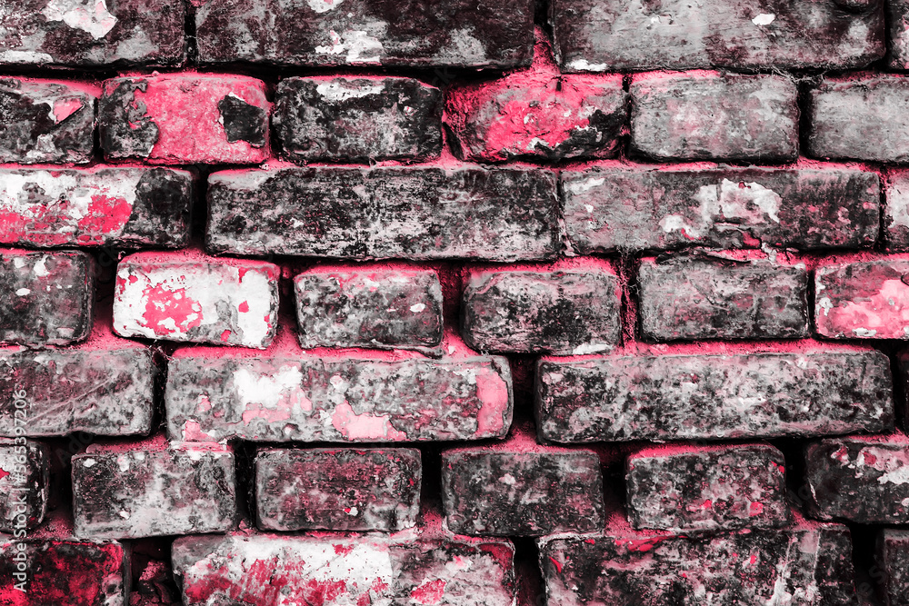Pink brick wall of old faded bricks as a background. Grunge texture. Loft style.