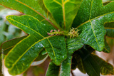 Indoor potted fresh plants on the windowsill in the sunlight.