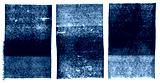 set of three highly detailed stamp / letterpress / rolled ink textures isolated over a transparent background, use as a grungy vintage overlay or as mask
