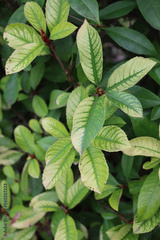 Iron chlorosis disease on Photinia hedge in the garden. Photinia x fraseri