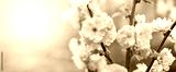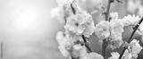 Sakura flowering. Large lush sakura flowers on a tree on a dark background in sunny weather