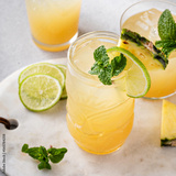 Mai tai cocktail in different glasses garnished with pineapple and lime