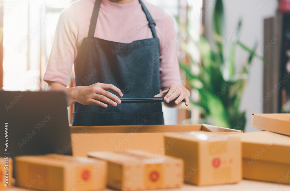 Startups or Small Business Entrepreneurs, Pack products for delivery, manage orders in online stores, shop online, sell online on the internet, SME, e-commerce,dropshipping delivery service concept
