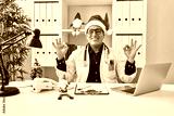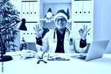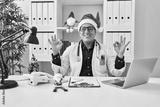 Hispanic young doctor man at the clinic on christmas relax and smiling with eyes closed doing meditation gesture with fingers. yoga concept.