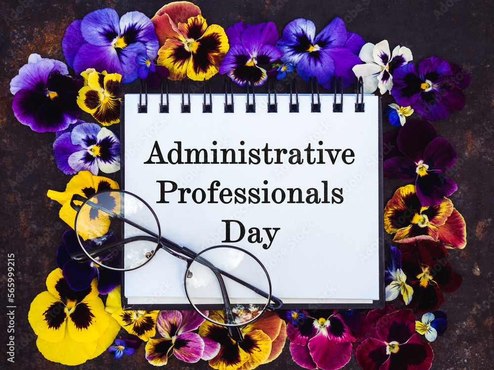 Administrative Professionals Day. Greeting Card. Close-up, view from above. Concept of preparation for a professional holidays. Congratulations for loved ones, relatives, friends and colleagues