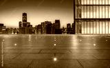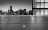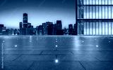 Empty square floor and city skyline with modern building at sunrise in Shanghai, China.