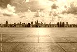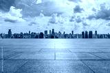 Empty square floor and city skyline with modern buildings in Shanghai, China.