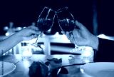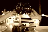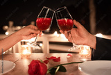Romantic dinner date, couple drinking wine, Valentines day, anniversary concepts.